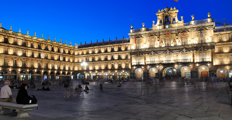 La Plaza Mayor de Salamanca es un espléndido ejemplo del Barroco español. Destaca por su majestuosidad, su rica decoración y una aparente perfección que esconde una serie de irregularidades fascinantes: